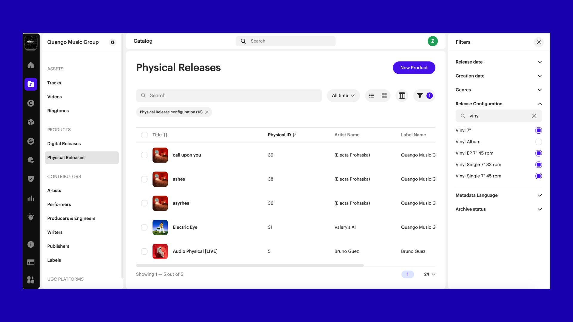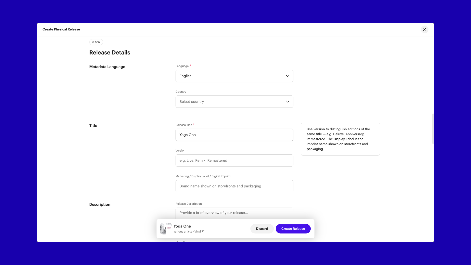 Physical Releases are designed for catalog and metadata management, helping you organize physical formats alongside your digital releases.